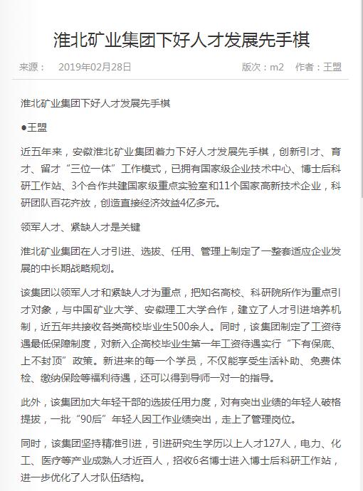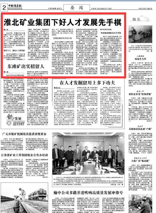 《中国煤炭报》2版头条:太子娱乐城 下好人才发展先手棋