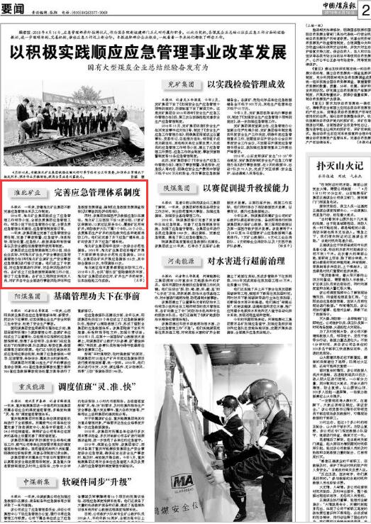 在孙疃矿开展了大面积掉电综合示范性应急演练。2018年,全集团各矿共开展应急演练112次,其中综合演练23次,专项演练89次。