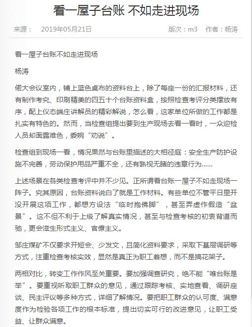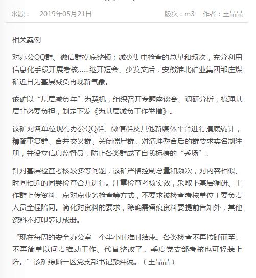 《中国煤炭报》:邹庄煤矿为基层减负再现新气象