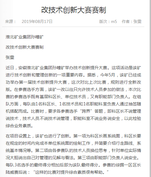《中国煤炭报》:太子娱乐城 孙疃矿改技术创新大赛赛制