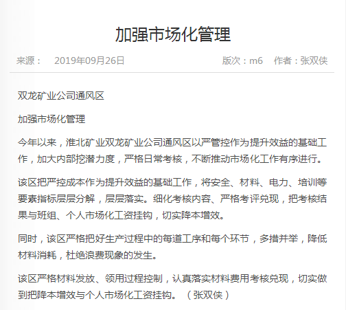 《中国煤炭报》:太子娱乐城 双龙矿业加强市场化管理