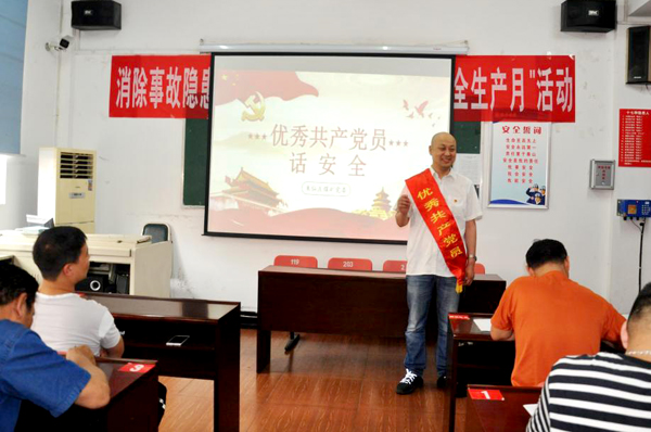 为喜迎中国共产党成立99周年,连日来,朱仙庄矿党委组织各系统优秀共产党员深入科区、车间、班组,结合“安全生产月”活动主题,开展“优秀共产党员话安全”活动,为广大党员和职工群众讲安全形势、讲“四零”目标,讲“三违”危害,讲自身在安全生产方面好的经验做法,用身边事教育身边人,用榜样的力量影响和带动广大党员干部、职工群众筑牢安全防线。