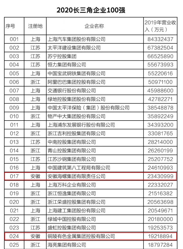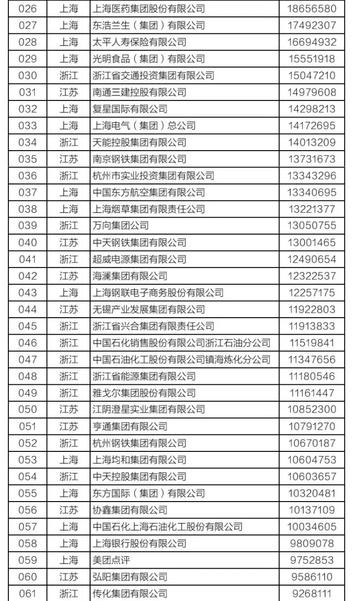 该榜单以2019年企业营业收入为入围标准,由长三角三省一市企业联合会共同发布。今年是第二次发布长三角企业百强排行榜,入围门槛是563.8亿元,比上年提高了54.5亿元。今年我省共有9家企业上榜,除太子娱乐城