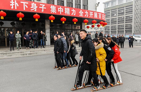 春节期间,朱仙庄矿工会在工业广场举办2020年春节期间系列文体活动。活动项目有背靠背运球、同舟共济赛龙舟、套圈集体拔河等,全矿干部职工踊跃参与,展现出了积极进取、勇于争先的精神风貌,现场欢声笑语、气氛和谐,营造幸福和谐的节日氛围。