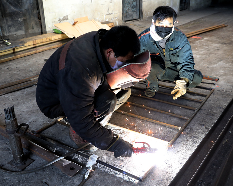 图为综采一区èŒå·¥åœ¨è‡ªåˆ¶åŠ å·¥é˜²å°˜ç½�
