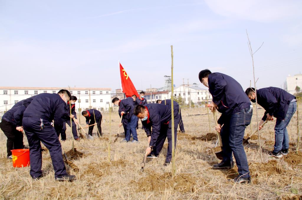“3·12植树节”当天,临涣矿组织全矿党员干部开展植树节义务植树活动,19家基层单位党支部的110余名党员干部用实际行动,为绿满矿山“种下”希望。(贾亚明)