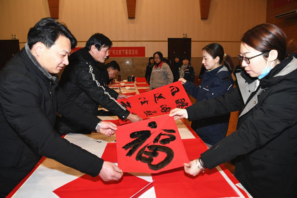 工会组织矿区书法家到临选厂开展“迎新春、保平安、送祝福”义务送春联活动,为职工家属提前送上新春的祝福。活动现场,七位书法家挥毫泼墨,将浓浓新春祝福送给职工和家属。