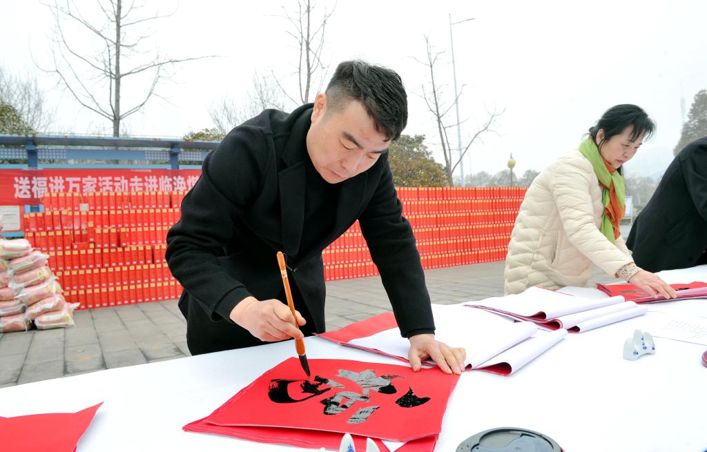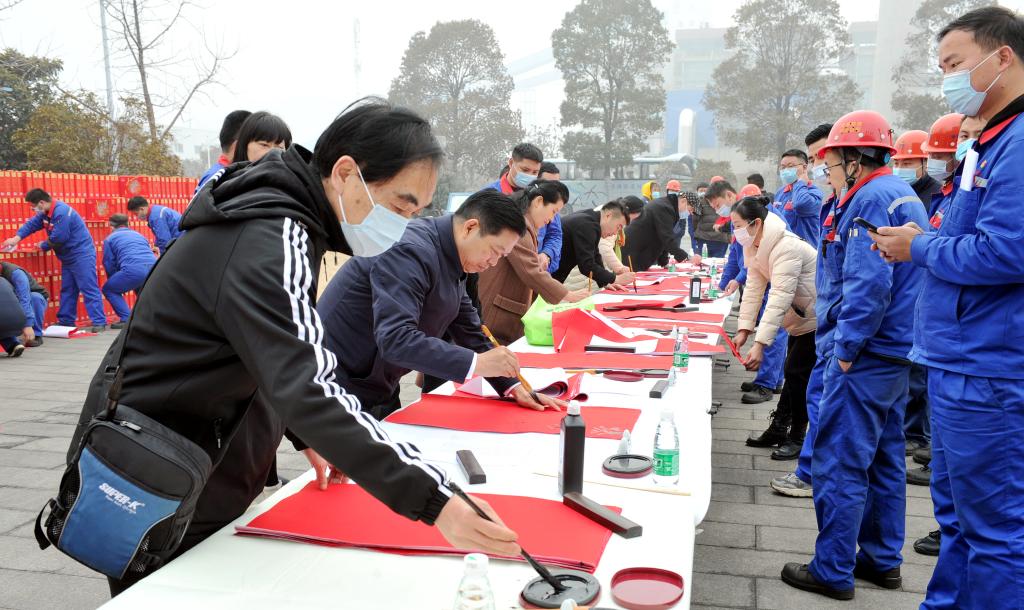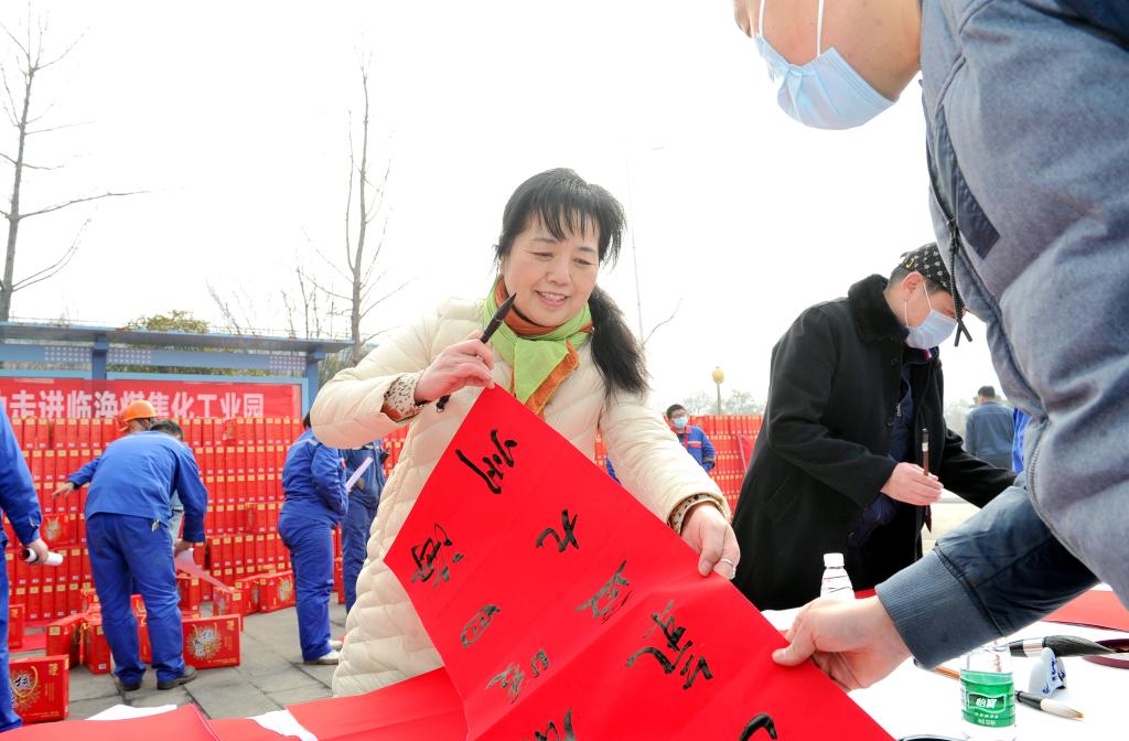 2�3日,安徽省书协、淮北市书协、市美协送福进万家活动走进临涣焦化,十位书法家义务为职工写春联、送祝福,引来了众多职工驻足观看,“年味”十足�
