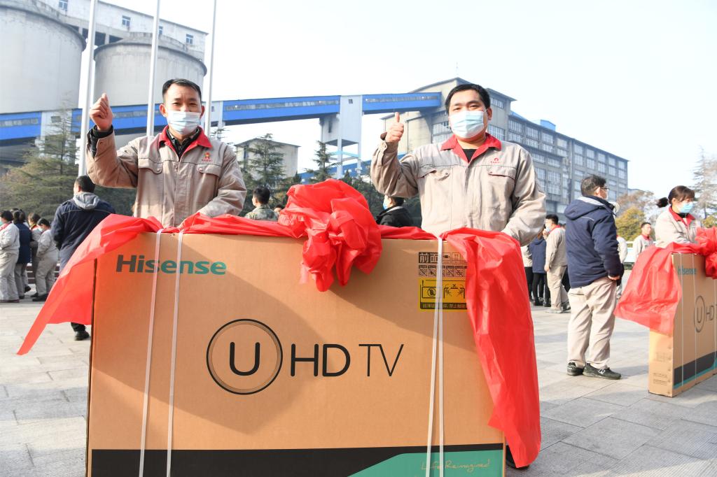 上午9时,该厂办公楼前工业广场热闹非凡,气氛活跃,职工翘首期待参与抽奖,每个人的脸上洋溢着喜悦的笑容。为做好疫情防控,各单位指派职工参与并进行监督,避免了职工聚集性接触。经过激动人心的随机抽取,该厂王毛毛、王营宽、刘磊等10名职工喜中大奖,分别获得了65寸海信电视奖品。