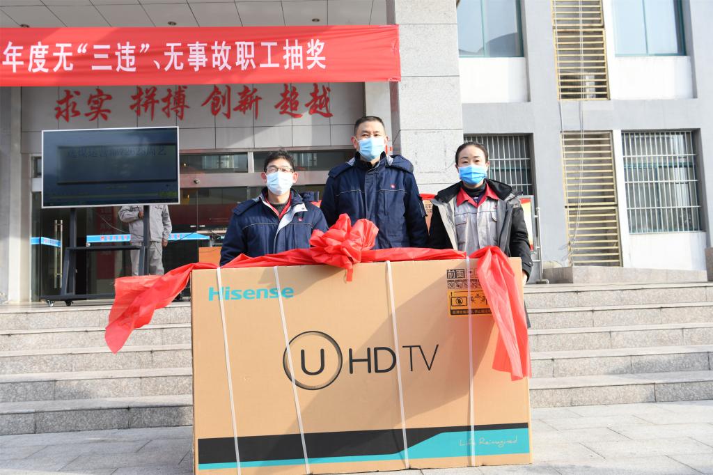 2月10日,临选厂举办2020年度职工“无‘三违’无事故”抽奖活动。该厂领导现场为符合条件的1236名职工进行线上电脑随机抽取年度大奖。