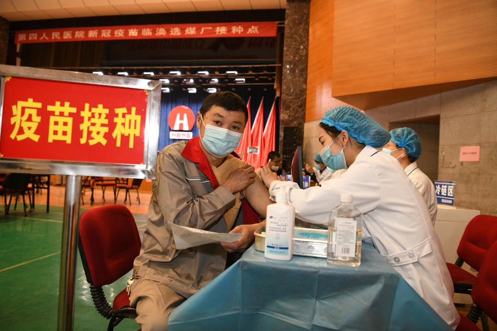 “大家按秩序排好队,核对好信息、测温后就可以到接种台打疫苗了……”5月18日,在临涣选煤厂接种点,工作人员正在现场引导职工有序进行新冠病毒疫苗接种。