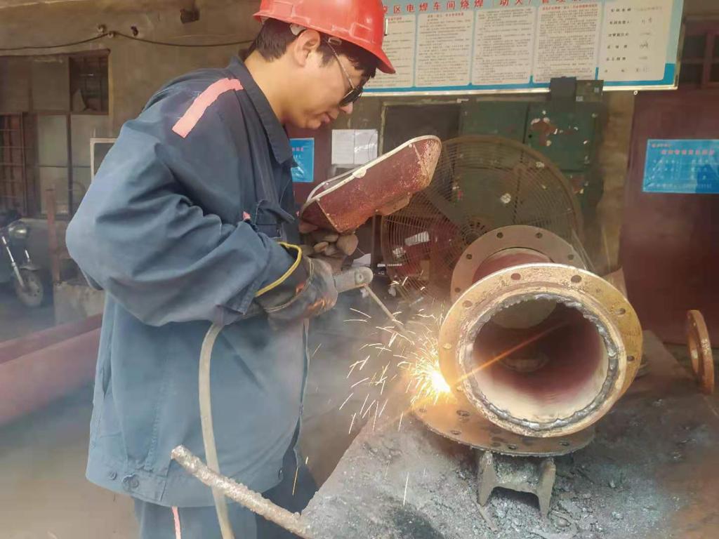 豆大的汗珠顺着赵龙脸颊流下,来不及用沾满油渍的双手擦一擦,他又开始了下一处焊。赵龙,今年41岁,在防突区工作24年,负责防突区各类管路的焊接工作。为了防止焊花落在身上,他每天必须“全副武装”,外穿长袖工作服,手套、工作帽、防护面罩一个也不能少。室外的酷热加上2000多摄氏度的电弧光烘烤赵龙似乎已经很习惯了。“井下急需三通合茬,我就得赶紧加工,白天焊不完,晚上就得加班干。”为了赶进度,赵龙的午饭和晚饭有时候就在电焊车间解决。“盯着焊枪时间久了,眼睛经常不舒服,会不停流泪,晚上收工后回家我得用冰冻矿泉水敷敷。”赵龙边说边用手比划着一直流泪的眼睛。