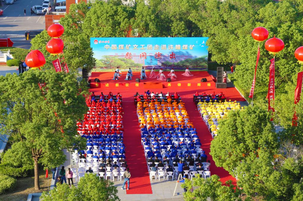 广场上,红色、蓝色、黄色……多彩的职工方阵整齐有序,掌声、哨声、欢呼声……幸福快乐的声音此起彼落。中国煤矿文工团在这里为许疃煤矿广大职工献上一台精彩的文艺大餐,受到矿井职工热烈欢迎。安徽煤监局淮北分局、集团公司工会及矿井相关领导到现场观看演出,并在演出结束时走上舞台与全体演职人员一一握手和合影留念。