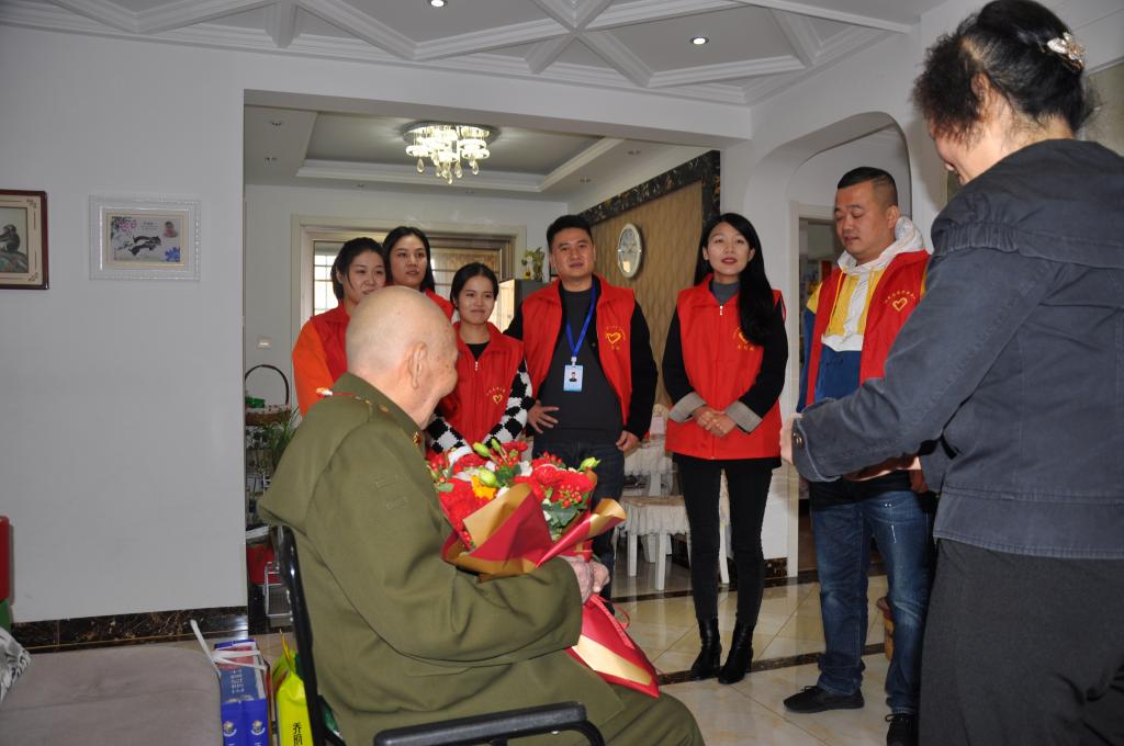 工程处与电力分公司6名青年志愿者到抗美援朝志愿军老战士宋良友家中拜访,给老兵送去牛奶、鲜花、水果及祝福。