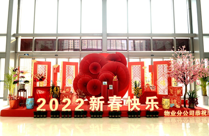 为迎接2022年寅虎年春节,营造喜庆、祥和、平安的春节气氛,物业分公司结合淮北市“人居环境集中整治,干干净净过大年”有关要求,在开展环境卫生集中整治的同时,在办公中心各处精心布置景观展台,悬挂大红灯笼等节日饰品,迎接新春佳节的到来。
