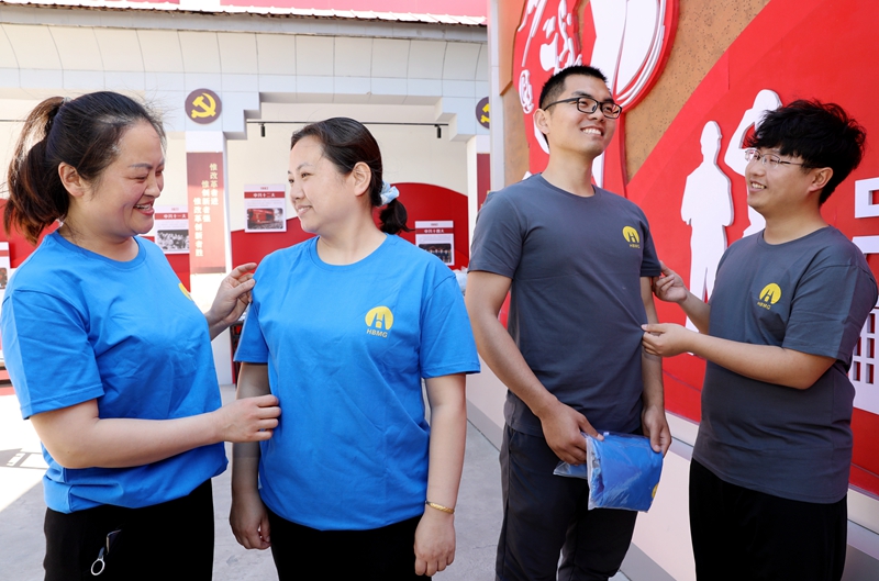 时值“五·五矿工节”之际,童亭矿职工纷纷领到矿上发放的两件全棉休闲T恤衫,一个个喜上眉梢,纷纷点赞叫好。