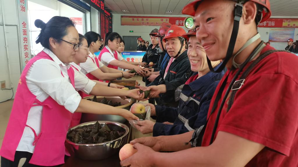 “来,师傅,吃个安全粽,下井作业一定要注意安全!�