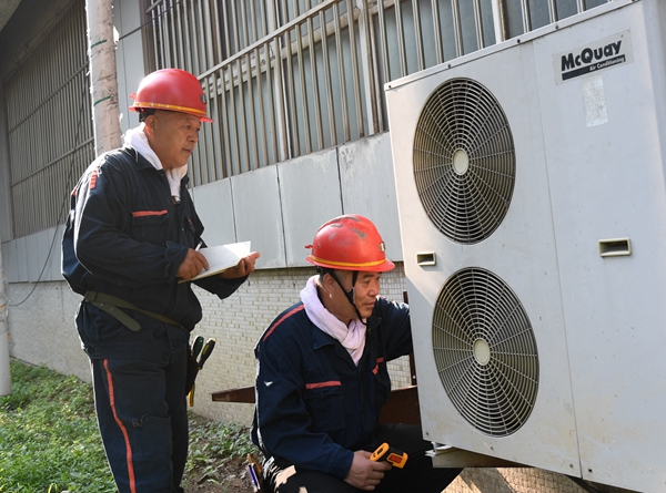 该矿充分利用班前会、安全会时间进行节约用电知识宣传,提升全矿干部职工节电意识。结合单位工作实际,进一步完善各项用电管理规章制度,加强对井下、地面重点单位用电管理监督,对重点区域的用电线路进行全面检查,及早发现消除隐患。同时,坚持节电“抓大不放小”的原则,从细节抓好节电管理,要求办公室人员做到人走灯灭、人走设备关闭,切实做好用电管理。图为该矿保运区两名职工正在对用电设备进行巡检。