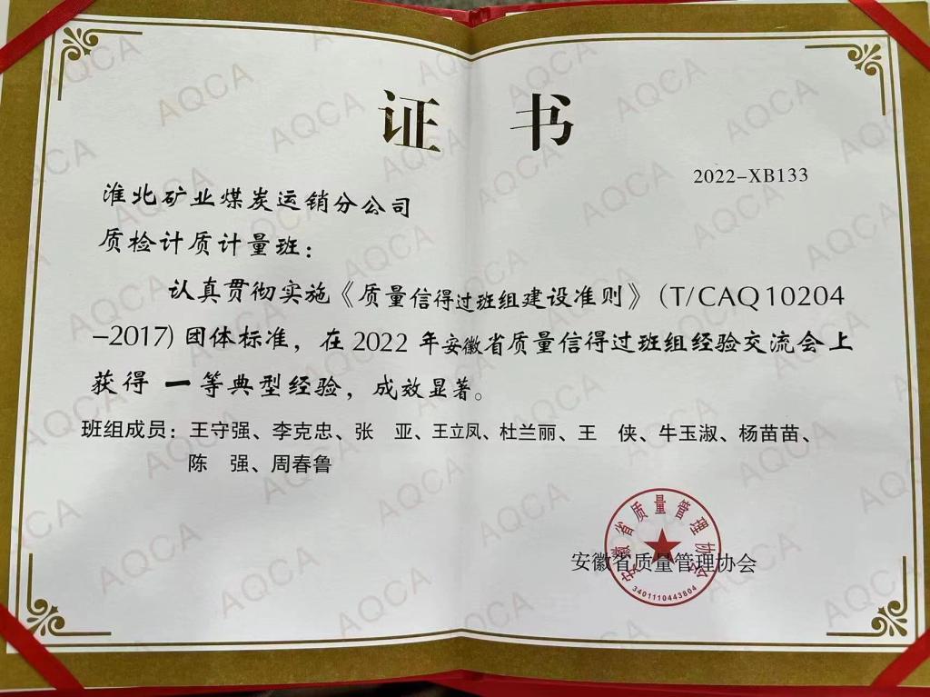 近日,从安徽省质量信得过班组建设经验交流会上传来好消息,煤炭运销分公司驻临选片区质检计量站质检计质计量班喜获安徽省质量信得过班组一等奖。