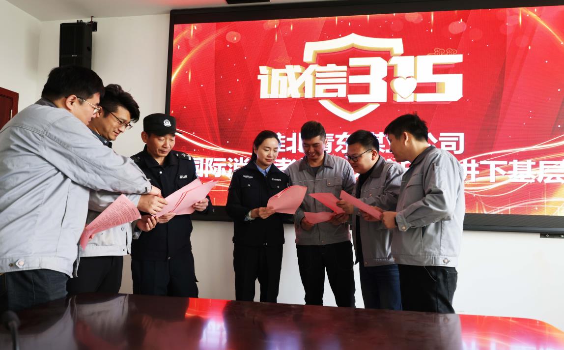 为不断增强职工的消费维权意识,保障职工合法权益,在3·15国际消费者权益日来临之日,青东煤业物业公司(武保)部门深入宿舍、食堂、超市、井口、会议室等场所,开展3·15普法宣传活动。活动现场,治保队员们发放宣传资料、现场解答职工疑问,向广大职工宣传《消费者权益保护法》,提醒广大职工警惕消费陷阱,引导职工理性消费,遇到纠纷问题及时拨打12315热线,懂得用法律武器维护自身权益,取得了良好的宣传效果。(撰稿:李亮 审核:李文博)
