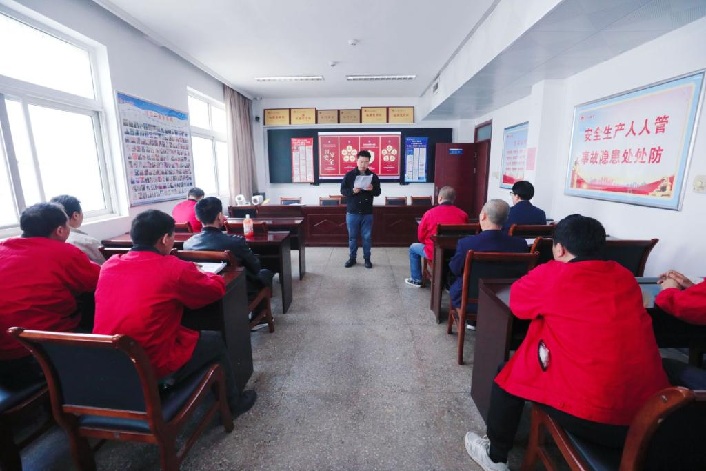 该矿线上线下齐发力,在办公楼、工业广场、食堂等重点场所悬挂安全标语条幅、设置展板;通过广播、网站、微信等载体学习转发重要论述、学习纲要、法律法规、举报方式等内容;采取安全宣讲、知识问答、发放宣传资料等形式,大力宣传维护国家安全的丰富内涵和重大意义,提升全员维护国家安全的意识和素养。(撰稿:朱叶;审核:周艳)