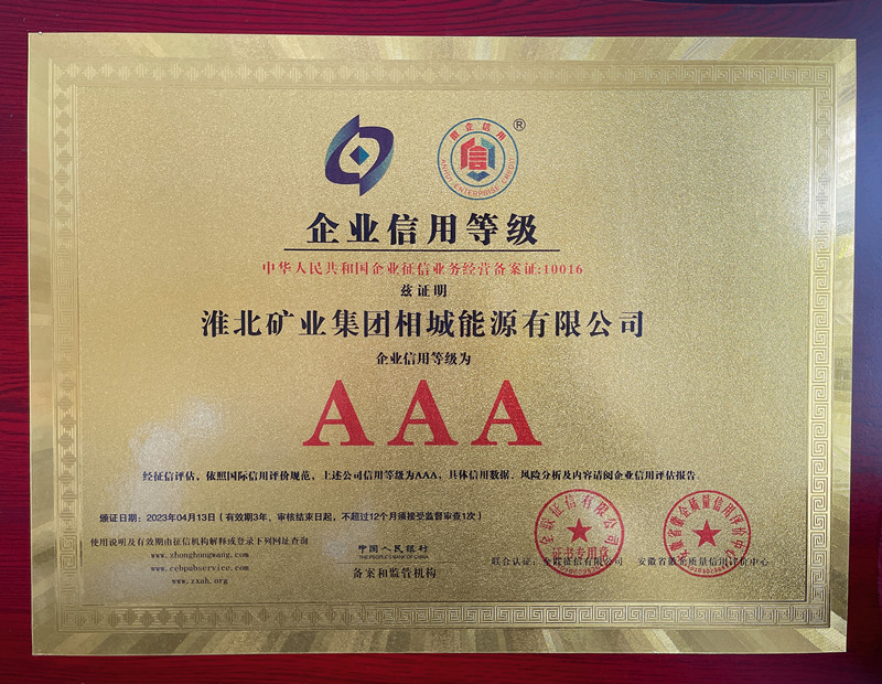 此次获评2023年安徽“AAA级信用企业”,是相城能源公司综合实力和发展成就的充分体现,树立了良好的企业形象,为公司发展和业务开展夯实了诚信之基,同时也为公司高质量发展提供有力支撑。