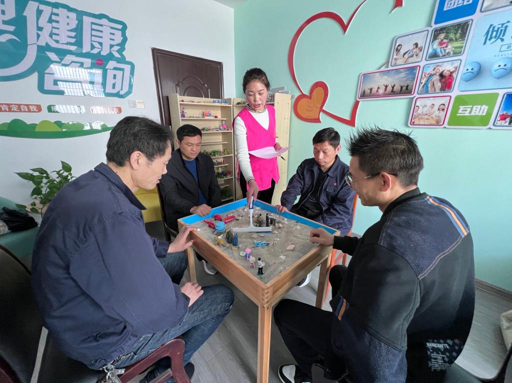 “接下æ¥ï¼Œè¯·å„ä½èŒå·¥ä¼¸å‡ºæ‰‹æŒ‡ï¼Œå’Œæˆ‘一起跳一支å‡åŽ‹æ‰‹æŒ‡æ“ï¼�1ã€�2ã€�3ã€�4......â€�5æœ�24日,在ç¥å—çŸ¿â€œå¿ƒçµæ¸¯æ¹¾â€èŒå·¥å¿ƒç†å’¨è¯¢å®¤å¼€å±•â€œç®¡ç†æƒ…绪,拥抱阳光â€å¥åº·å¿ƒç†æ™®åŠæ´»åŠ¨ä¸Šï¼ŒçŸ¿å¿ƒç†å’¨è¯¢å‘˜æ£åœ¨å¸¦é¢†èŒå·¥ç”¨å‡åŽ‹æ‰‹æŒ‡æ“æ”¾æ¾æƒ…ç»ªã€‚ï¼ˆæ¨æ™¨ï¼�