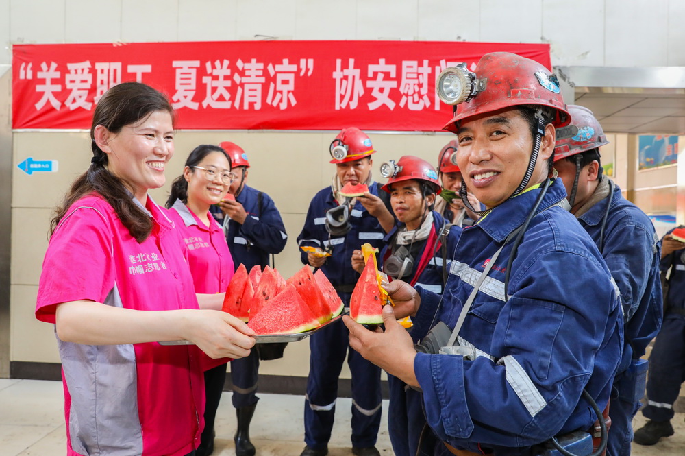 据不完全统计,入夏以来,童亭矿已为职工发放风油精2406瓶,花露水1203瓶,并送去西瓜1500斤,凉面、面皮260斤,职工在酷暑中持续感受到“家”的清凉。(撰稿:李靳靳 ;审核:程伟)