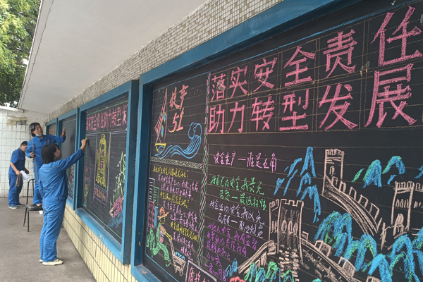 三季度以来,淮北选煤厂以精细化管理为抓手,大力开展“两整两清”活动,加强现场安全管理,确保实现安全“四零”目标。图为8月24日,职工围绕“落实安全责任 助力转型发展”主题手绘板报,营造全力以赴抓好安全工作的良好氛围。