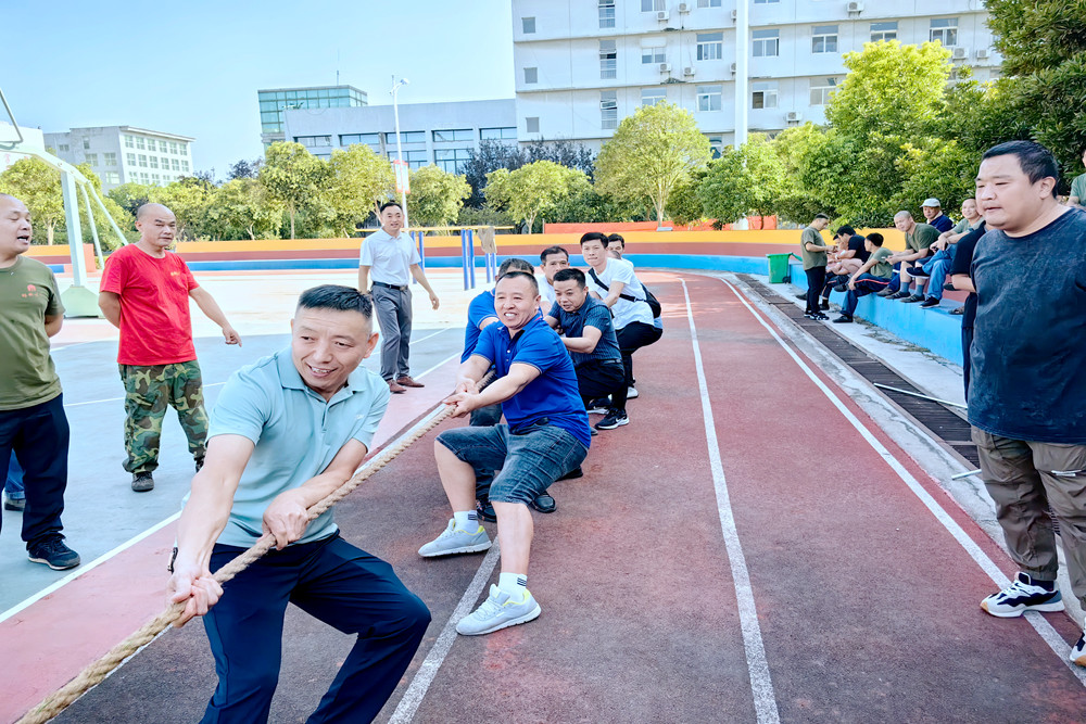 拔河比赛现场,伴随着裁判员一声嘹亮的哨响,一条沉重的绳子被双方队员拉得笔直。“一二、加油、一二、加油……”在大家声嘶力竭的加油呐喊声中,各支参赛队伍的选手紧握长绳咬紧牙关、使出浑身解数,在来回的拉锯战中挑战着体力与意志力的极限。赛场上加油声、呐喊声、喝彩声此起彼伏,比赛的氛围一度达到高潮,俨然成为了一片欢乐的海洋。
