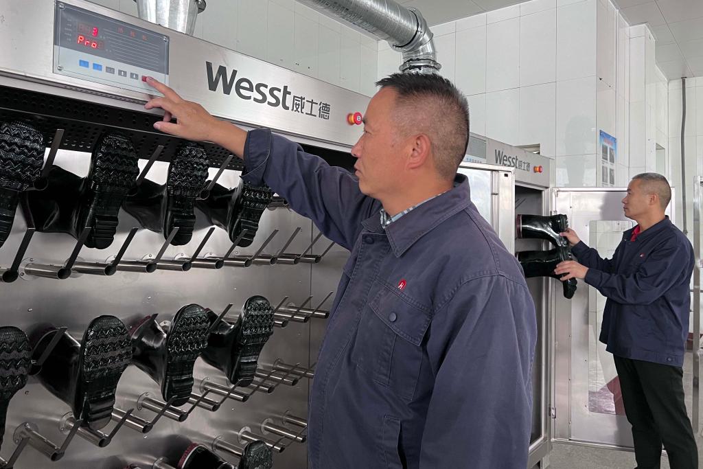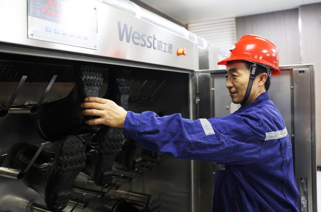 “现在投入的五台智能胶靴烘干机,每台可以容纳40双胶靴,同时运转的情况下,一次可以对200双胶靴进行烘干,半个小时就能完成。”该矿物业公司副经理胡文辉介绍。