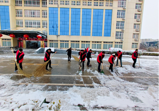 é’年志愿者们冒ç€ä¸¥å¯’,或æ¡å¸šæ‰«é›ªã€æˆ–挥锹铲雪,全力清除路上的积雪和暗冰。铲雪ã€é™¤å†°ã€æ¸…è¿ï¼Œå„个岗ä½ååŒä½œæˆ˜ã€é…åˆé»˜å¥‘ï¼ŒåŒæ—¶æ¸©é¦¨æé†’èŒå·¥â€œå°å¿ƒè·¯æ»‘â€â€œæ…¢ç‚¹èµ°ï¼Œæ³¨æ„安全â€ï¼Œé’年志愿红æˆä¸ºäº†å†°å¤©é›ªåœ°é‡Œä¸€é“é“ä¸½é£Žæ™¯çº¿ï¼Œä¸ºå¯’å†·å¤©æ°”å¢žæ·»äº†åˆ«æ ·çš„ç¾Žä¸½ã€‚ç»è¿‡ä¸æ‡ˆåŠªåŠ›ï¼Œé’年志愿者们将主è¦é€šè¡Œé“è·¯ã€åŠžå…¬æ¥¼å‰ç‰åŒºåŸŸçš„积雪暗冰全部清ç†å¹²å‡€ï¼Œä¿éšœå¹¿å¤§å¹²éƒ¨èŒå·¥å‡ºè¡Œå®‰å…¨ã€�