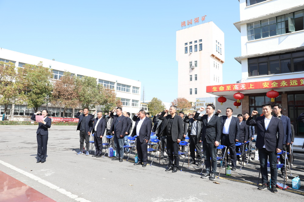 “为了安全生产,为了家庭幸福,为了矿井发展,我用良心宣誓:牢记安全第一,严守两个规范,狠反‘三违’行为,做到四不伤害!”宣贯活动结束,铿锵有力的安全集体宣誓声在广场上方久久回荡。