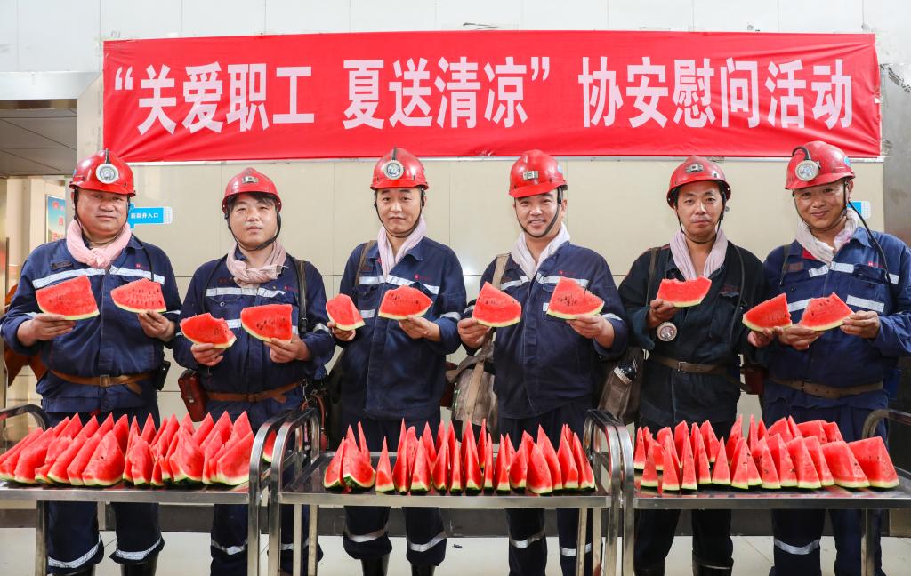 “师傅,您辛苦了,吃块西瓜,清凉又香甜。”“师傅,来碗绿豆汤,防暑又解渴。”“您来支雪糕,下井工作可要时刻注意安全哈。”……