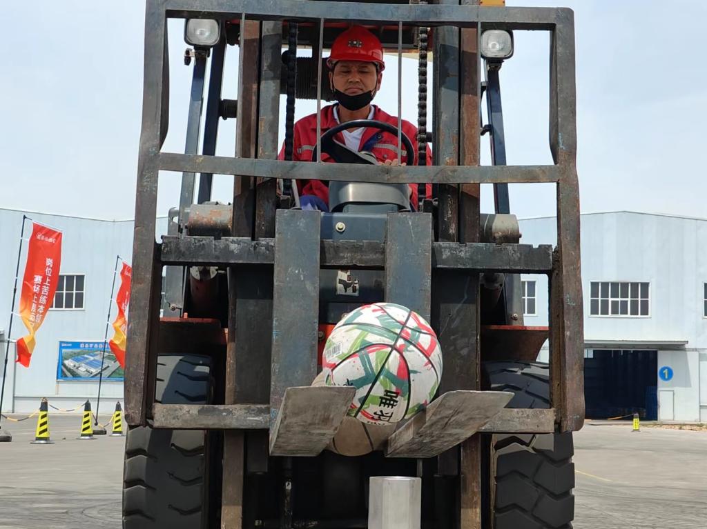 叉车比武分为叉车叉托盘绕桩及叉车投篮球两个项目,重点考核参赛选手稳、准、快等操作技能。赛场上,选手们按照比赛要求,凝心聚神,鸣笛起步,沉着冷静应对,稳步驾驶车辆,在规定的场地内完成了一系列高难度操作任务。沿着规定线路,定点叉货、灵活倒车、巧打方向、平稳驱车、精准堆垛,现场精彩不断。