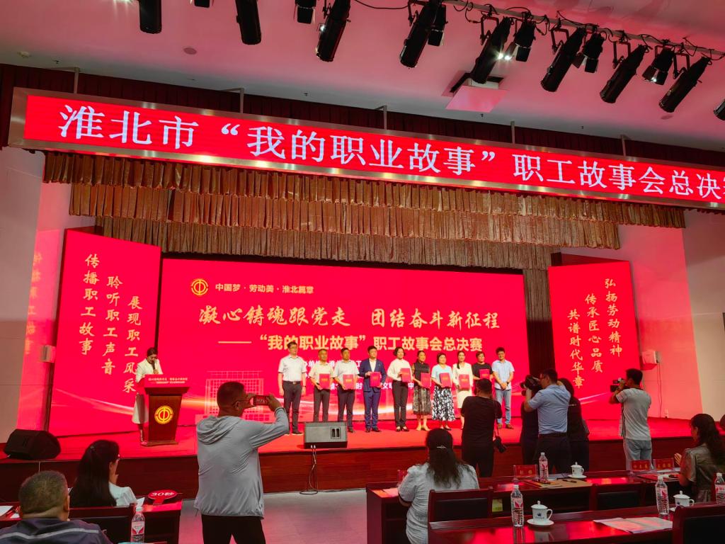 本次比赛由淮北市总工会主办,全市各级工会组织以职场故事为主,以劳动精神为线,以感人肺腑、曲折动人的细节为点,讲述劳模工匠、身边同事、工友、普通劳动者的感人故事,唱响“咱们工人有力量”的昂扬旋律。经过两个月的激烈角逐,共有16名选手脱颖而出,登上总决赛的舞台。临涣焦化公司参赛选手黄杰、崔灿,以《你的名字》为题,声情并茂、饱含深情地讲述了“中淮”品牌的由来和高质量发展中的感人故事,深深打动了现场评委和观众,最终以9.8分的高分,将一等奖收入囊中。