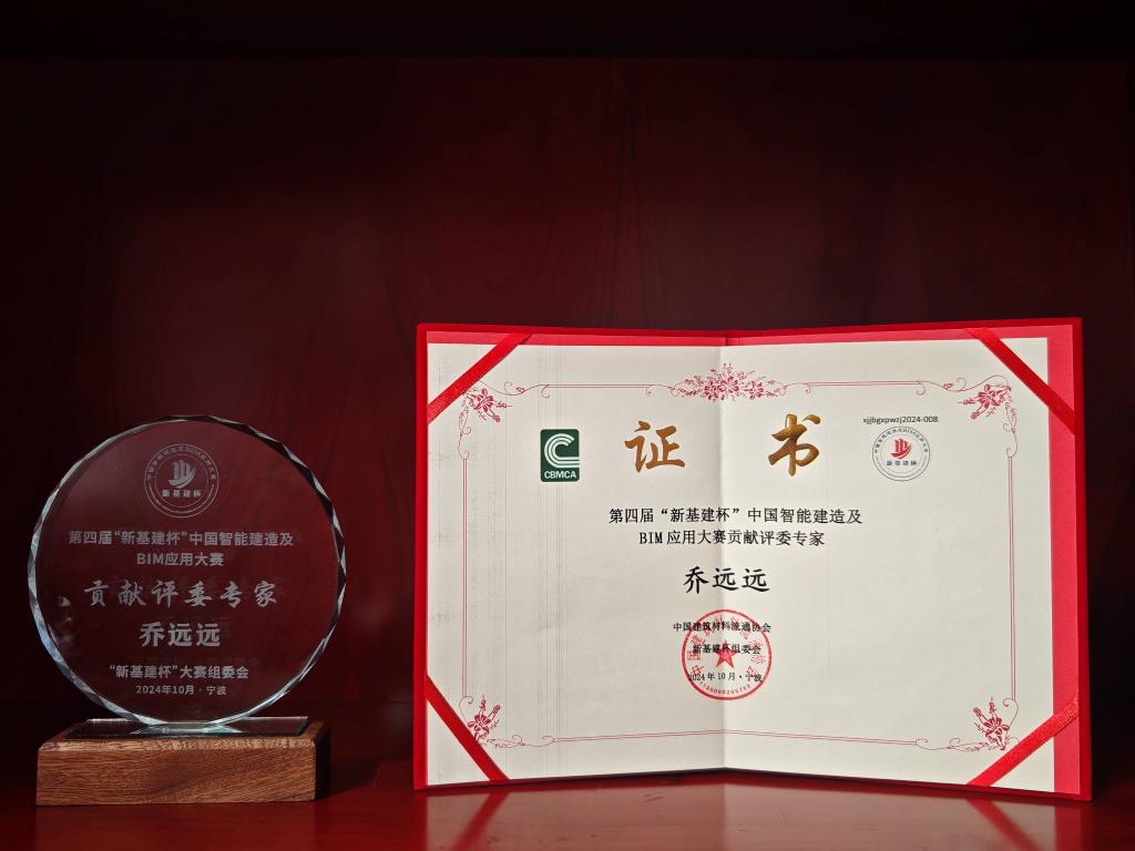 近日,中国建筑材料流通协会及全国“新基建杯”大赛组委会根据《“新基建杯”中国智能建造及BIM应用大赛评委管理办法》规定,通过综合考核,评选出22位第四届“新基建杯”中国智能建造及BIM应用大赛“贡献评委专家”,工程建设公司职工乔远远榜上有名,获此殊荣。