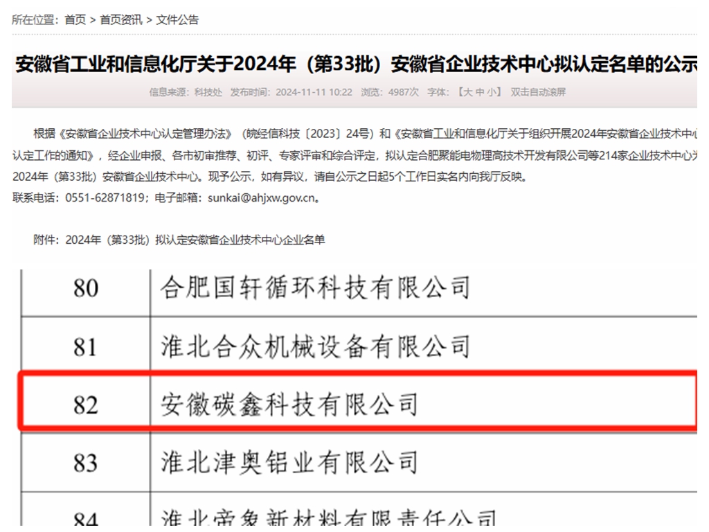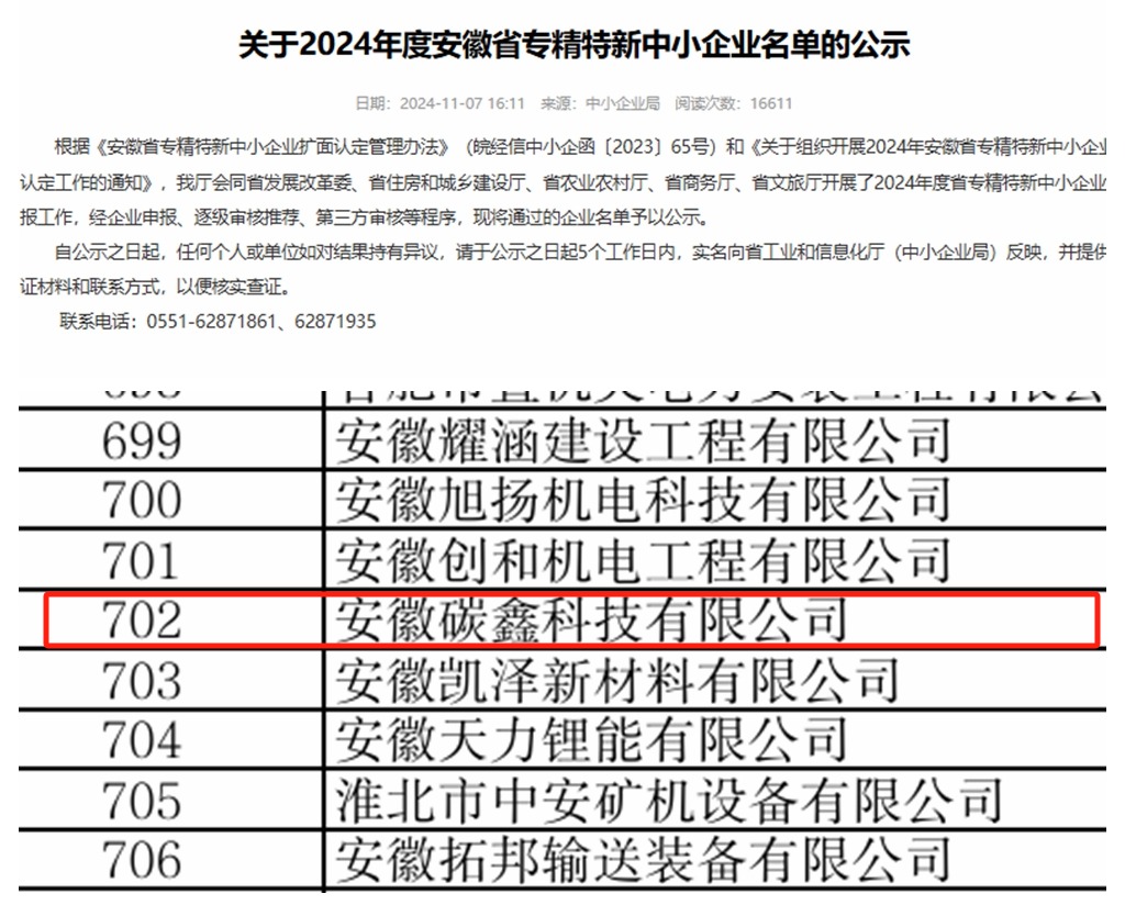 专业技术过硬、科创实力突出、发展潜力巨大……近日,碳鑫科技公司连续通过了安徽省“专精特新”中小企业及安徽省企业技术中心认定,公司发展含“金”量更足。