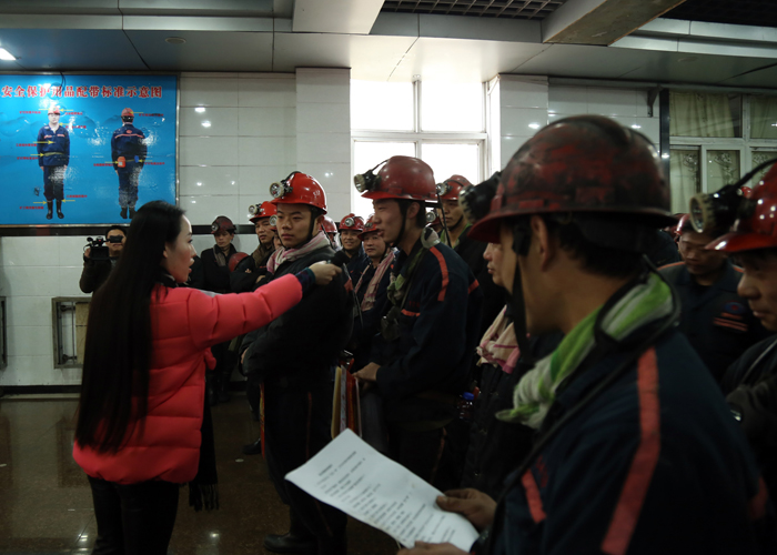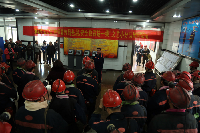 演出期间,演员们走进职工中间,和职工的互动更是让职工师傅感到了春天般的温暖,更感受到了煤矿生产安全关系你我他。职工们还积极参与到集团公司2016年形势政策知识问答中,大家踊跃举手,现场抢答,回答正确者,获得精美礼品一份,得到的是祝福,更是一份安全的叮嘱。表演、问答、叮嘱句句不离安全,演出慰问给现场所有的职工敲响了新年的钟声,提醒大家煤矿生产安全第一。