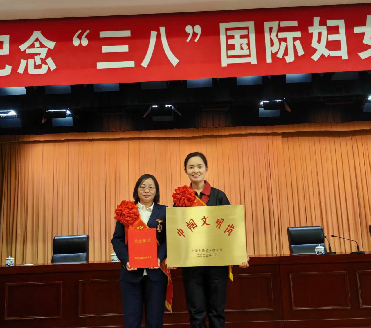 2025年全国巾帼文明岗袁店一井绞车房班、安徽省三八红旗手标兵朱仙庄矿刘维凡在现场接受表彰。