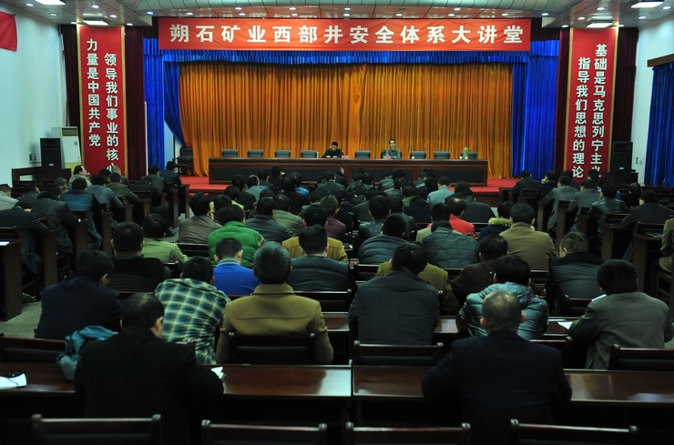 公司领导杨朝风、王建华、孙烈喜、倪进锁、李金刚和100多名采掘、辅助单位及安监、技术、调度、地测等职能部门班队长以上管技人员认真聆听授课。
