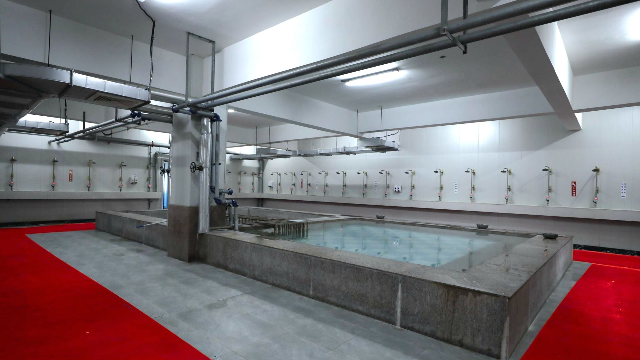 “浴室面积进一步扩大,一层变三层,配备800组更衣柜,暖气、空调、饮水机、吹风机一应俱全,洗浴用品全部免费,又刚发了新拖鞋,下班啥都不用带,冲个澡别提多舒服了。”