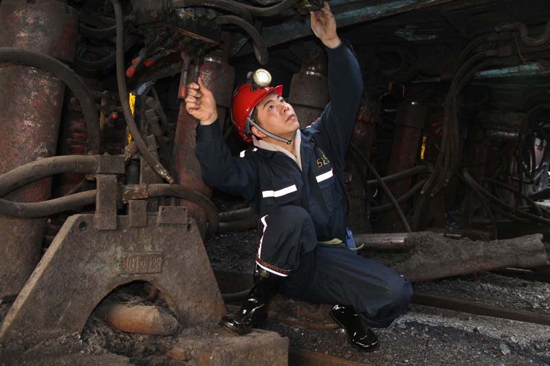 朔石公司东部井采煤一区区长杨洪武,是一个勇于创新的汉子。去年8月,他接手的大倾角工作面,是集团公司重点攻关项目,也关系着朔石公司数千名职工家属的吃饭问题。他带领140多人,不畏苦累,克服飞矸伤人、支架歪斜等困难,创新管理,在40多度的大倾角工作面上安全实现每月生产原煤6万多吨的辉煌战绩,使资源枯竭、濒临关闭的企业起死回生。这个多次被集团公司评为“十大杰出青年”、“优秀共产党员标兵”、“五好职工”等荣誉的汉子,又一次成为矿山功臣。图为3月31日杨洪武在检查液压支架管路。