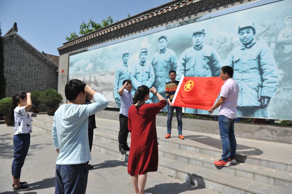 5月4日,青东煤业团委在淮海战役总前委旧址纪念馆举行“激扬青春勇担当 聚焦双效建新功”主题团日活动,纪念五四运动97周年。以革命先辈的光辉事迹,坚定青年理想信念,激发信仰力量,凝聚聚焦双效的青春合力,助力企业打赢生存保卫战。图为该公司团员青年在淮海战役总前委合影前重温入团誓词。