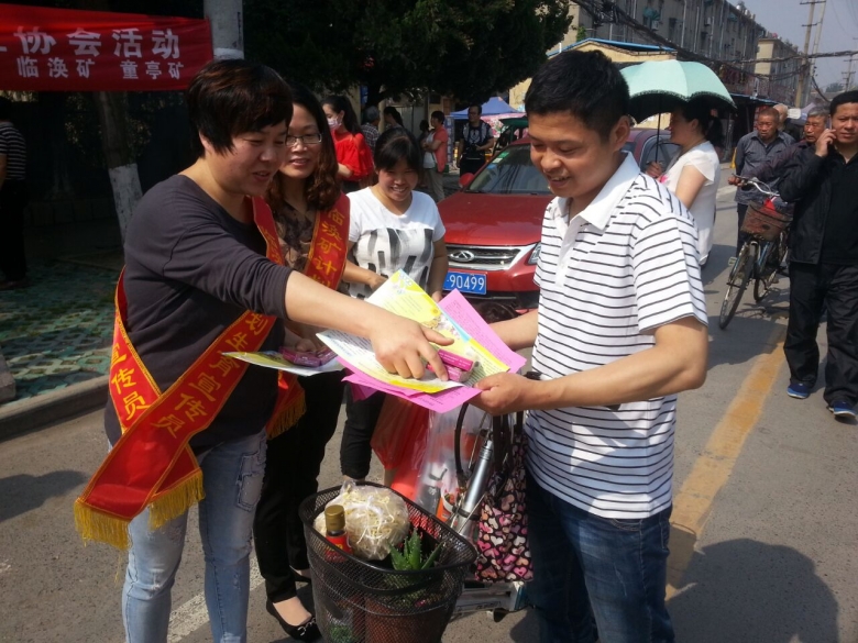 5月25日上午,临涣矿计生协会联合临海童街道办事处、童亭矿计生协,开展“生育关怀、幸福家庭”“5.29”人口计生主题宣传活动,设立了“计生宣传站台”,放置各类避孕药具,向职工群众免费发放,并现场给职工家属宣传新的计生政策,讲解计划生育法律法规,让职工家属了解“单独二孩”新政策,将优生优育知识与和谐幸福理念传递给广大职工群众,受到了职工群众的一致欢迎和好评。