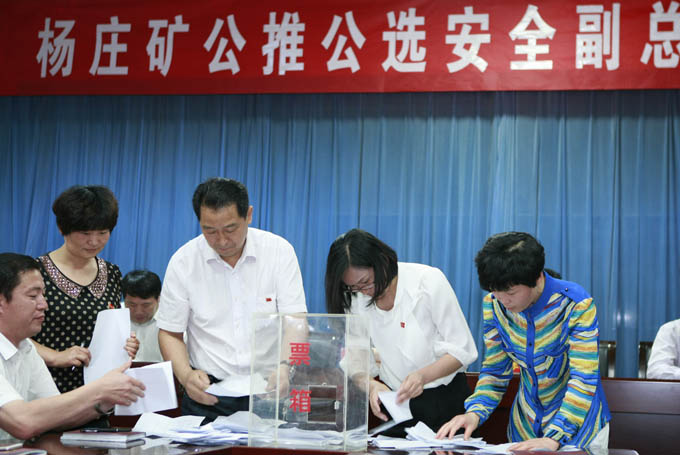 根据集团公司《关于进一步规范副总管理工作的意见》和《关于进一步加强和改进人事管理工作的意见》文件精神,6月2日下午,杨庄矿召开公推公选安全副总工程师会议。矿副总以上矿领导、机关单位副科以上干部、基层单位党政正职,部分党员代表、职工代表等共72人参加了公推公选会议。会议由矿党委书记李庆军主持。