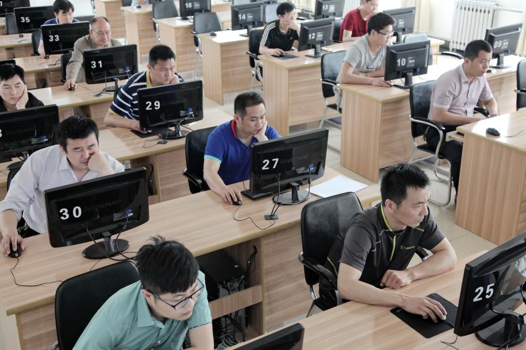 考试由采、掘、通、机、运等专业分管矿领导带队,结合各自的排班情况,分别选择上下午时间进行上机考试。
