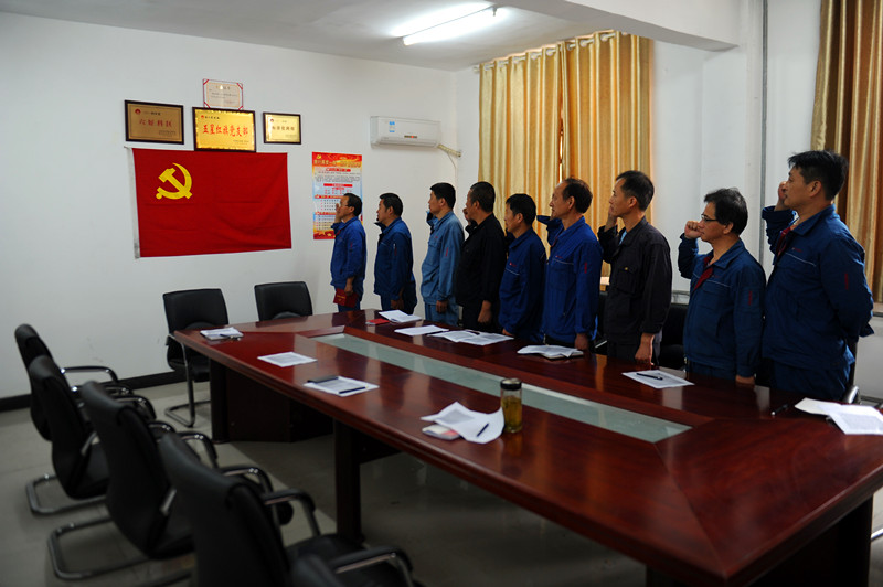 涡北选煤厂持续推进“两学一做”学习教育,开展形式多样、内容丰富、学与做相结合的系列学习教育。图为该厂煤管科党支部“重温入党誓词”活动。