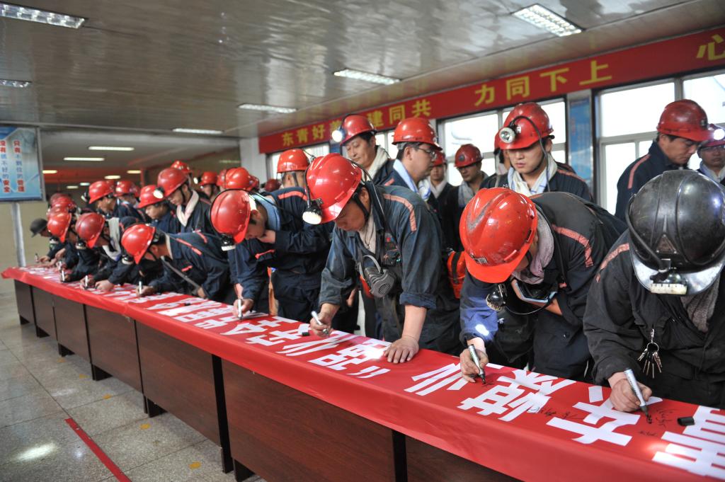 仪式上,全体人员在印有“安全生产月”活动主题的条幅上郑重签名承诺,坚持做到敬畏生命、守卫安全,严抓严管,以实际行动确保矿井安全发展。