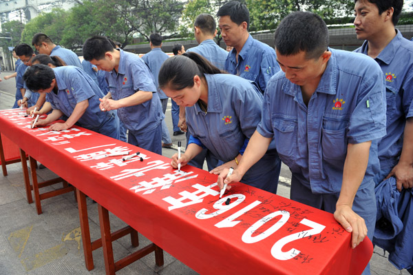随后,该厂领导班子成员带领基层干部职工进行了安全宣誓,并纷纷在“淮北选煤厂‘安全生产月’活动启动仪式”的红色条幅上签名承诺。